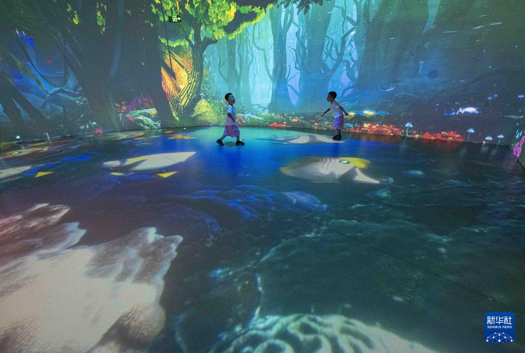 11月13日,小朋友在位于海口的新华书店海岛书香店沉浸式儿童互动区玩耍。