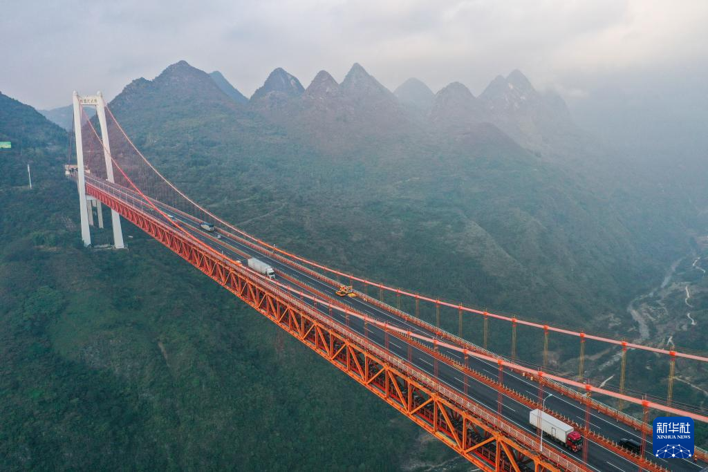 11月13日拍摄的贵州坝陵河大桥(无人机照片)。