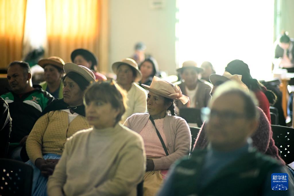 10月10日,在秘鲁万卡约市,当地农户聆听秘鲁马铃薯专家维克多·奥塔苏的马铃薯种植技术讲座。