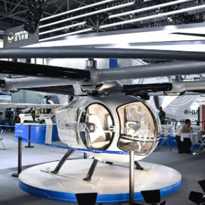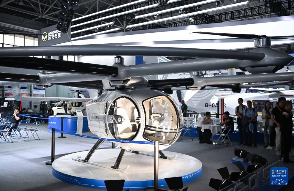 这是低空经济馆展出的沃飞长空AE200飞行器(11月13日摄)。