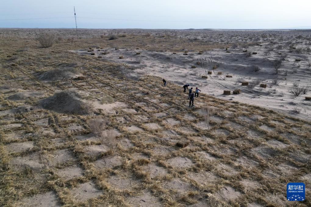 初冬时节,甘肃省武威市民勤县林业部门组织干部群众在沙漠边缘压沙治沙。民勤县地处巴丹吉林沙漠和腾格里沙漠之间,近年来,当地实施巴丹吉林沙漠南缘风沙阻击、腾格里沙漠西缘协同治理、绿洲外围沙地歼灭、林草湿荒资源管护利用“四大专项行动”,综合治理青土湖、西沙窝、老虎口等重点风沙口。