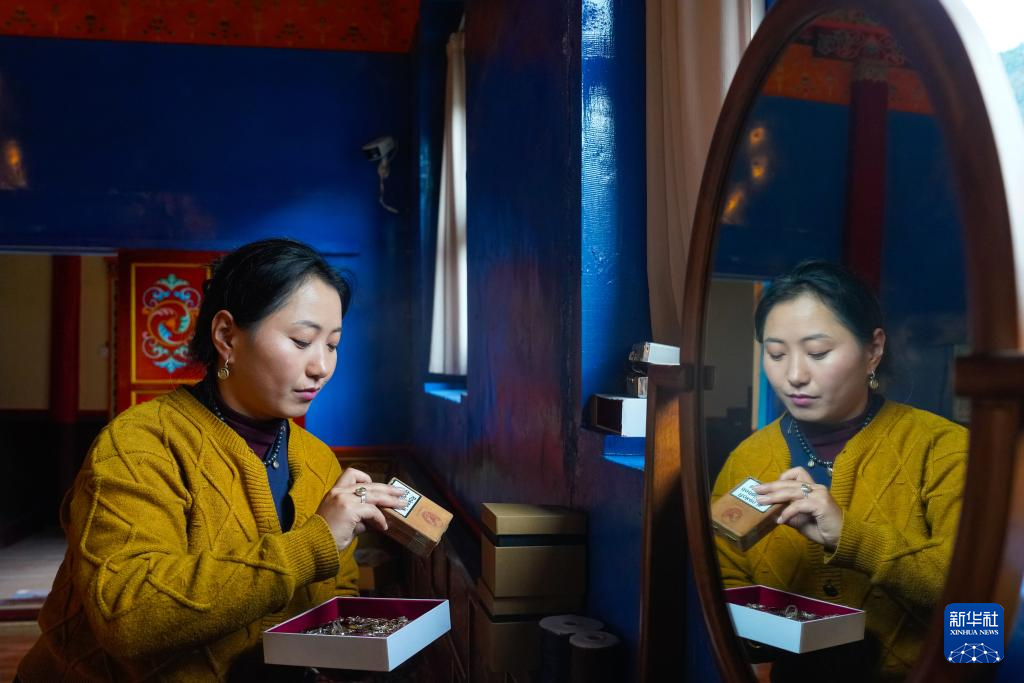 达瓦卓玛在挑选准备寄出的订单货品(11月3日摄)。