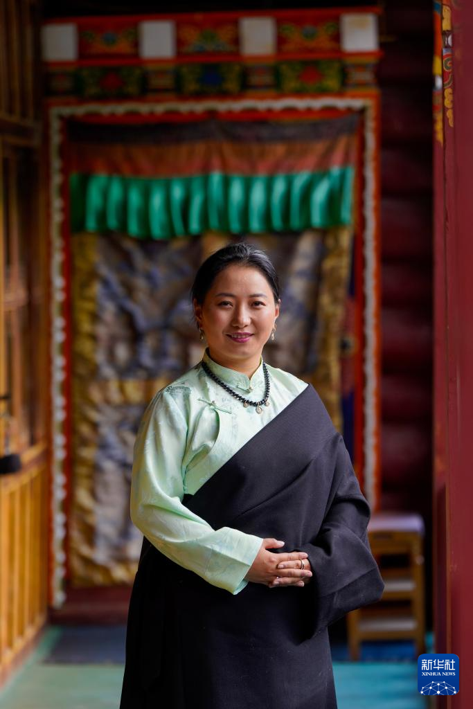 这是11月5日在四川省甘孜藏族自治州巴塘县南戈村村史馆拍摄的刘莎莎。