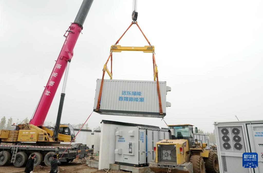 11月15日,工人在位于河北省衡水市武邑县武邑镇境内的百兆瓦级独立储能电站建设工地施工。