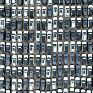 11月15日在重庆果园港拍摄的准备装运的汽车(无人机照片)。