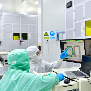 11月14日,在山东奥莱电子科技有限公司,工作人员在检查产品质量。
