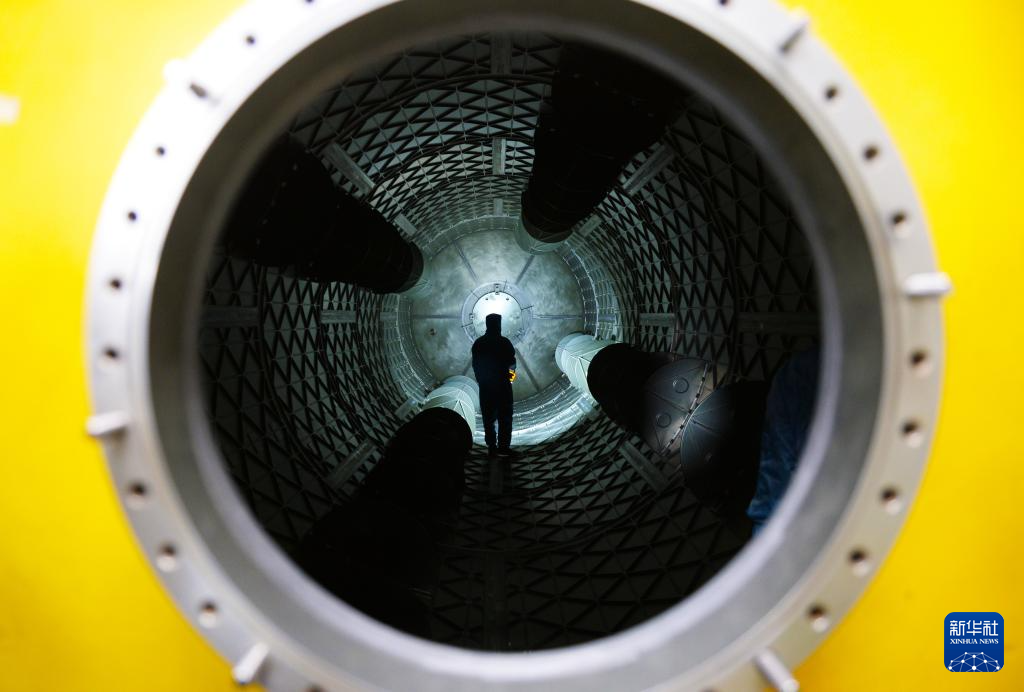 11月9日,在安徽省池州市皖江江南新兴产业集中区,安徽星河动力装备科技有限公司的技术人员在火箭总装车间的一级氧箱内工作。该公司是国家级专精特新“小巨人”企业,从事商业运载火箭领域的研发生产。
