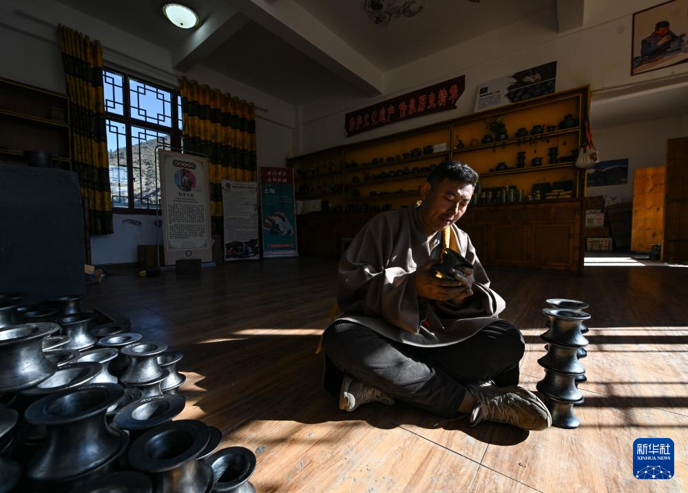 根呷火热在复检即将发往外地的黑陶产品(11月3日摄)。在四川省甘孜藏族自治州德格县麦宿镇,根呷火热忙着制作成都一家餐饮企业的黑陶订单。今年39岁的根呷火热是四川省级非遗麦宿黑陶的传承人,也是麦宿当地黑陶工坊的创始人。捣土、塑形、风干、烧制……在传承与创新中,根呷火热不断钻研,让手工艺品从雪域深山走向省内外消费市场。