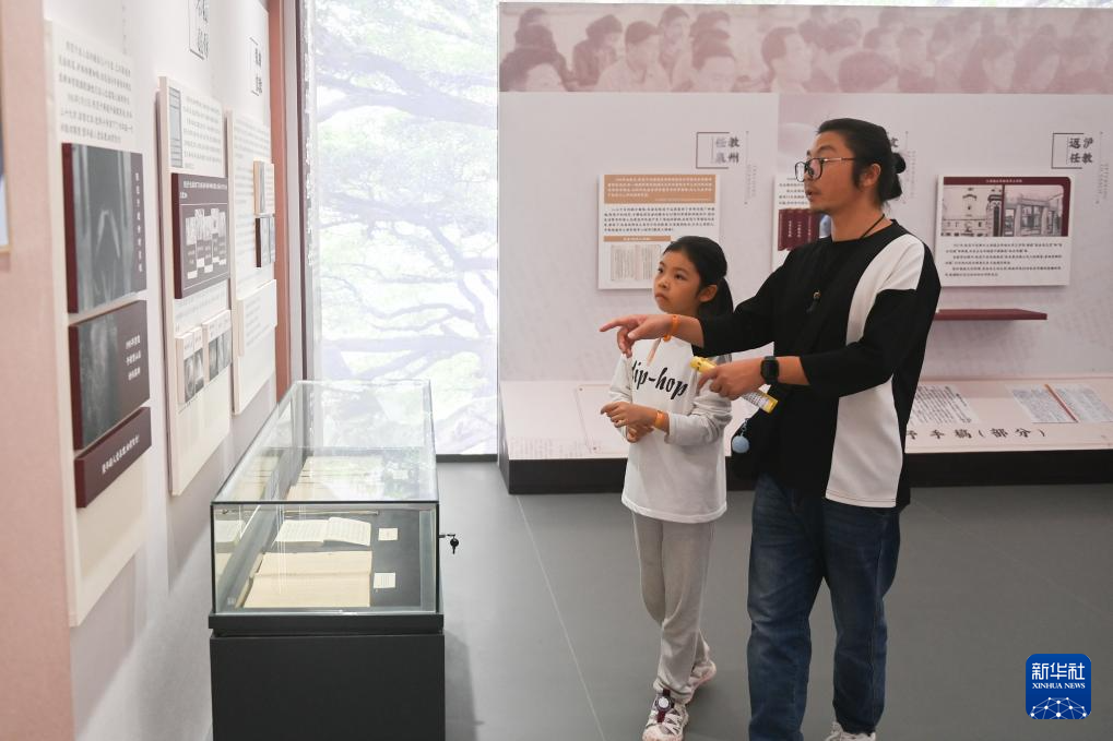 11月16日,一对父女在姚江镇山汀村渔山书院观看历史人物生平陈列,以完成点位任务。