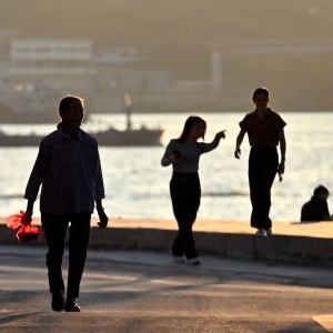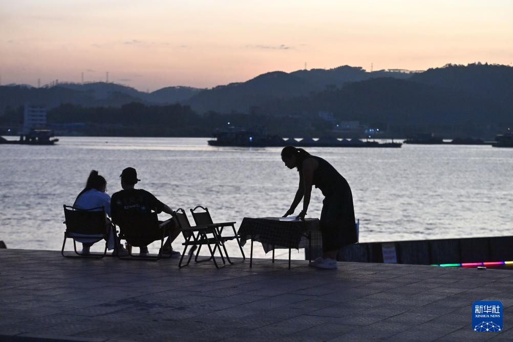 游客在广西梧州市长洲区长洲镇泗洲村欣赏夕阳(11月12日摄)。