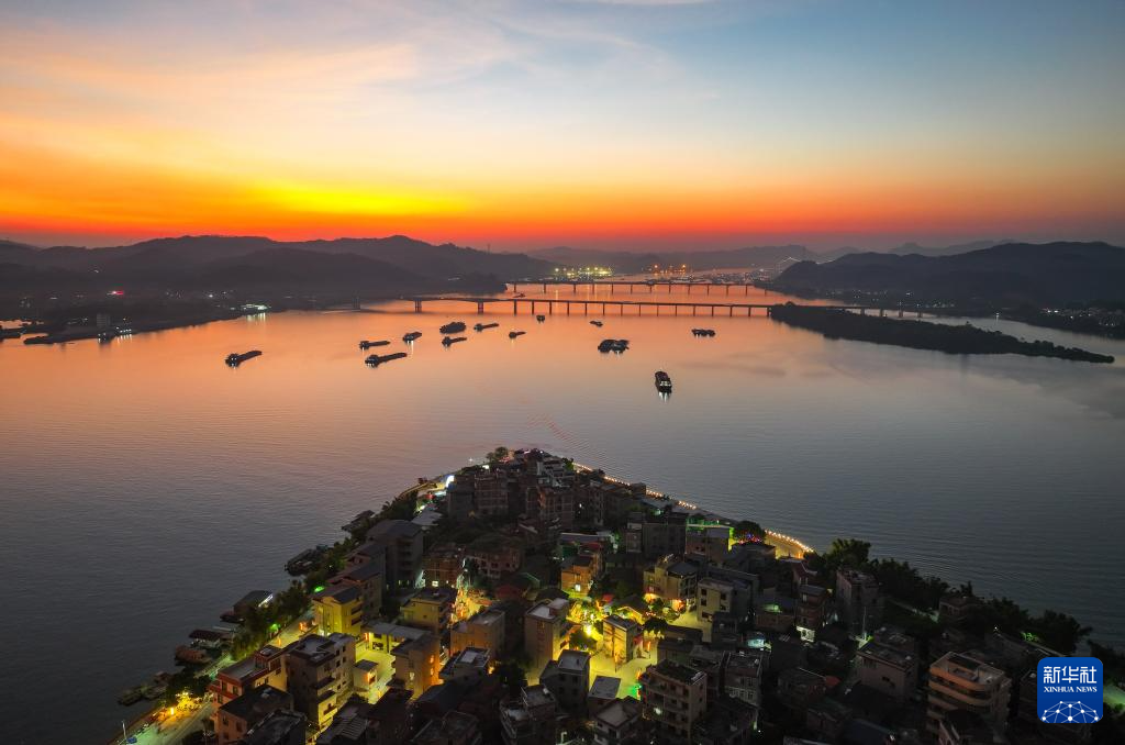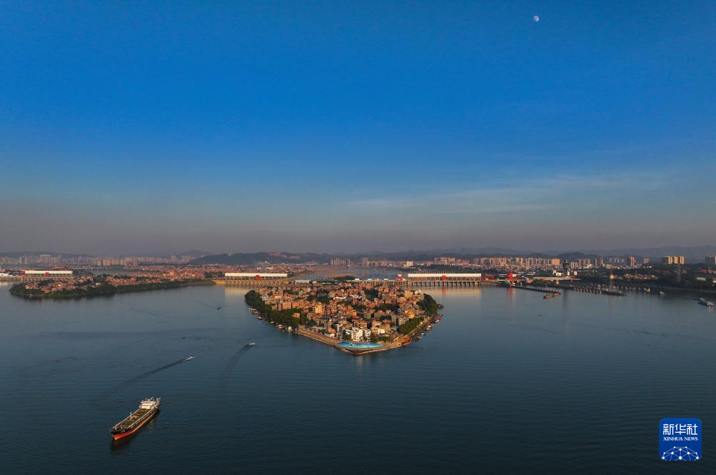 这是广西梧州市长洲区长洲镇泗洲村的傍晚景色(11月13日摄,无人机照片)。