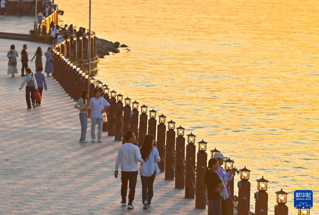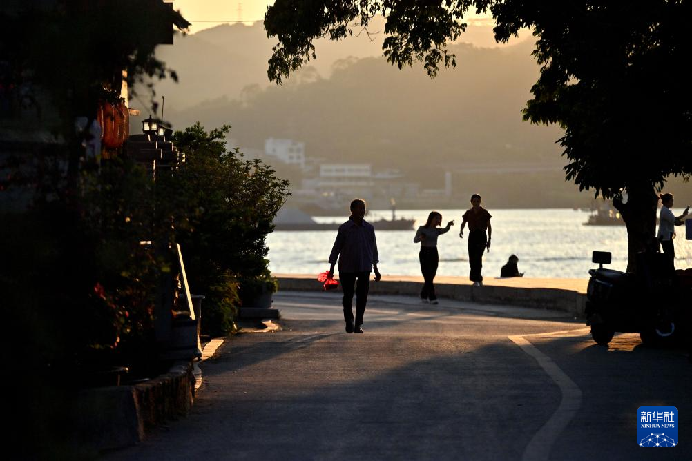 游客在广西梧州市长洲区长洲镇泗洲村欣赏夕阳(11月14日摄)。