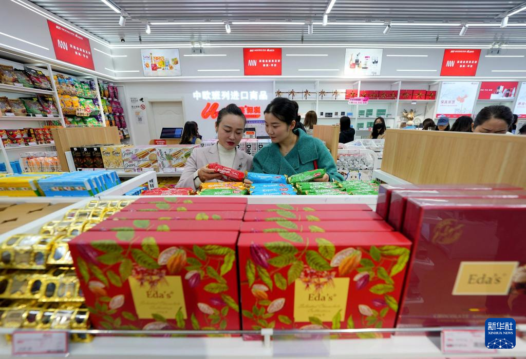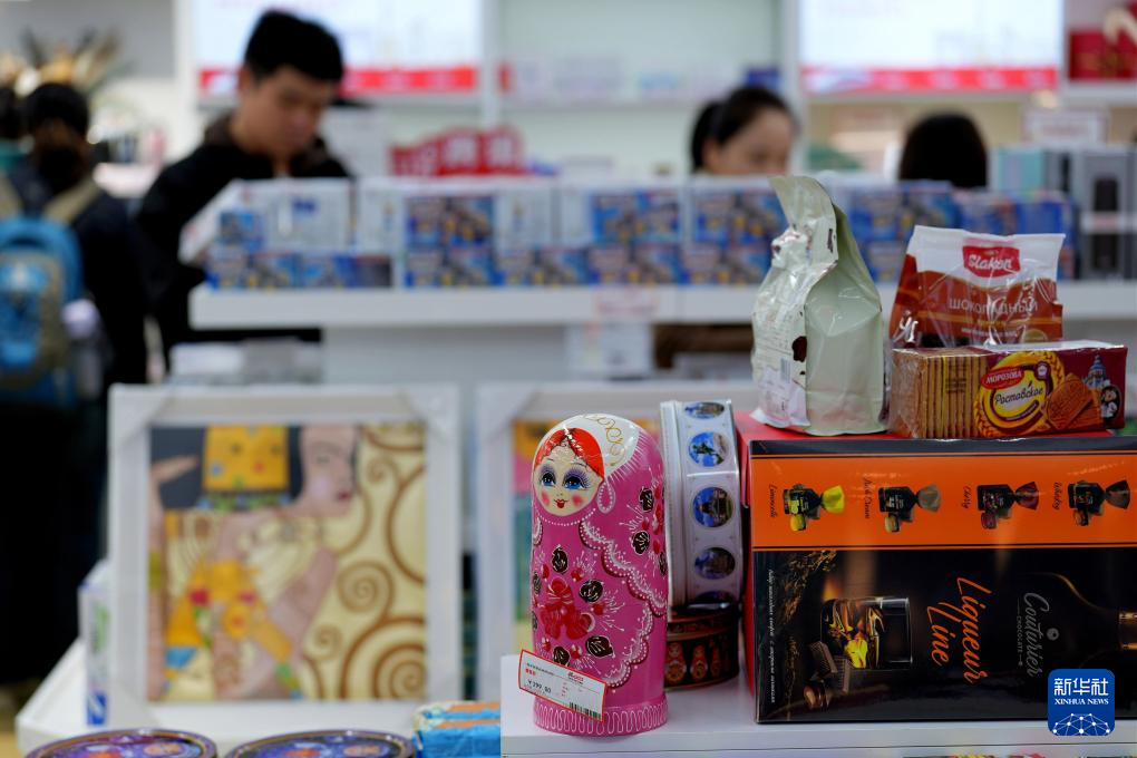 11月17日,旅客在湖北汉口车站中欧班列进口商品保税店选购商品。
