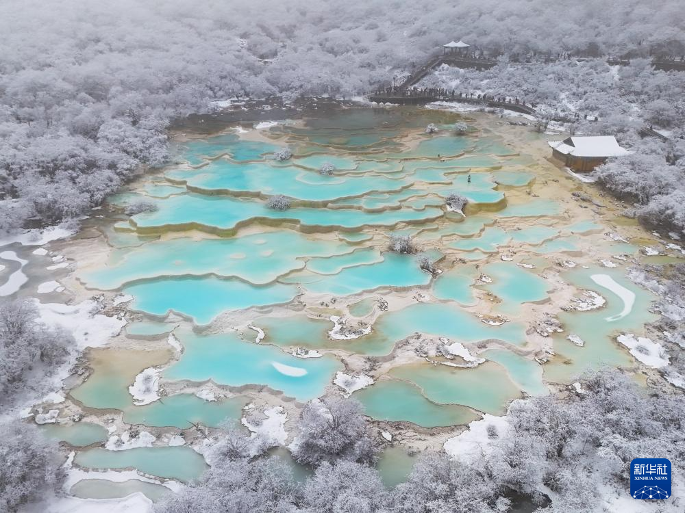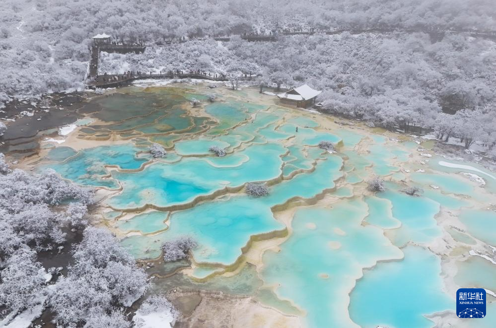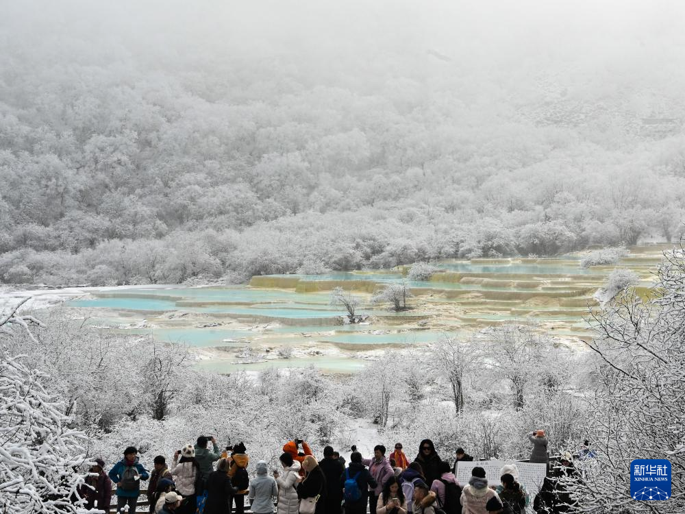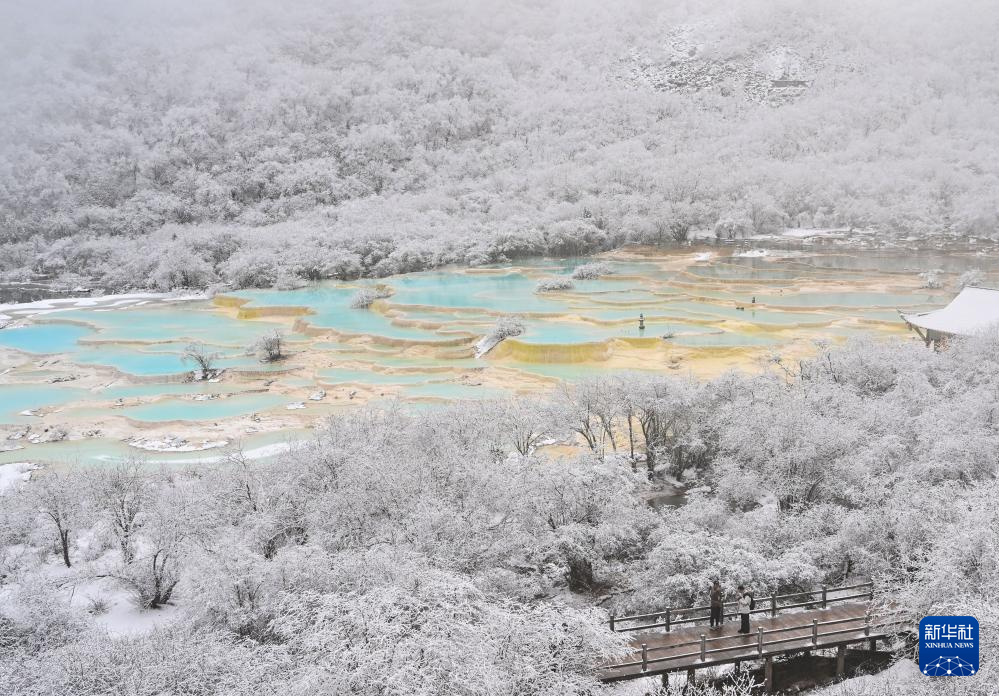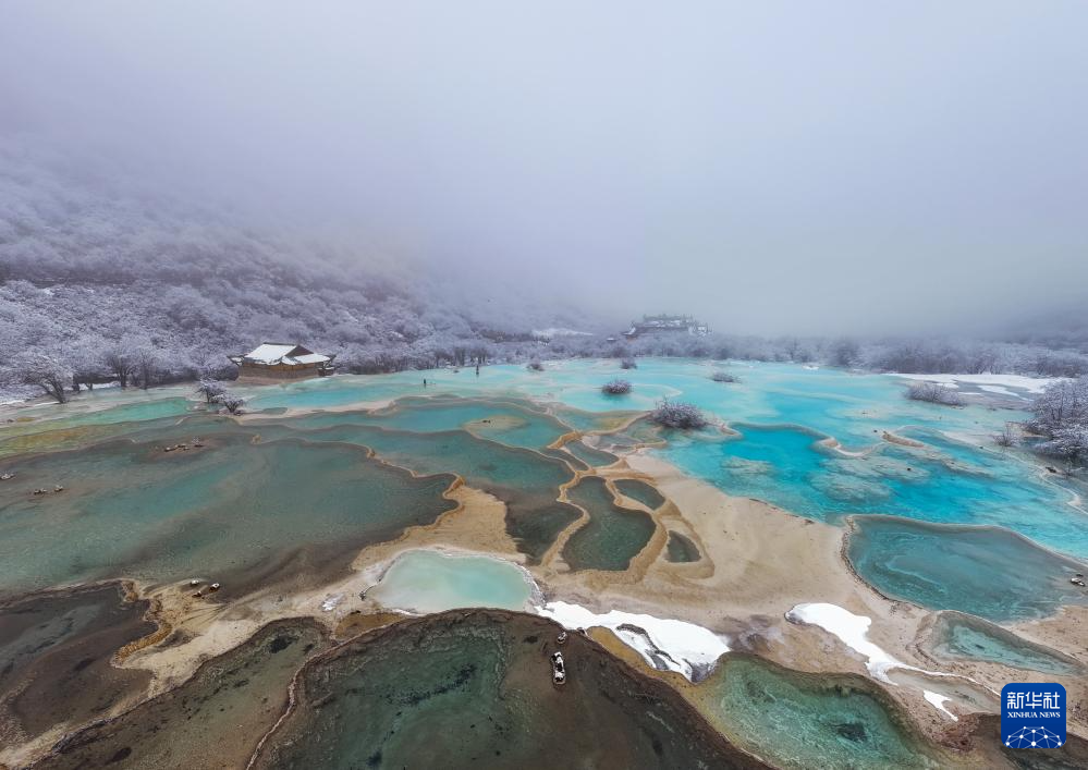 当日,雪后的四川省阿坝藏族羌族自治州黄龙景区薄雾弥漫,仿佛披上了一层轻纱,如梦如幻。