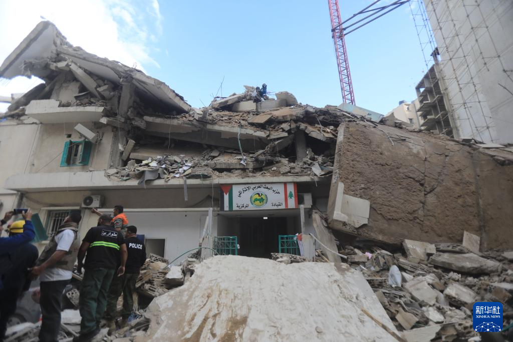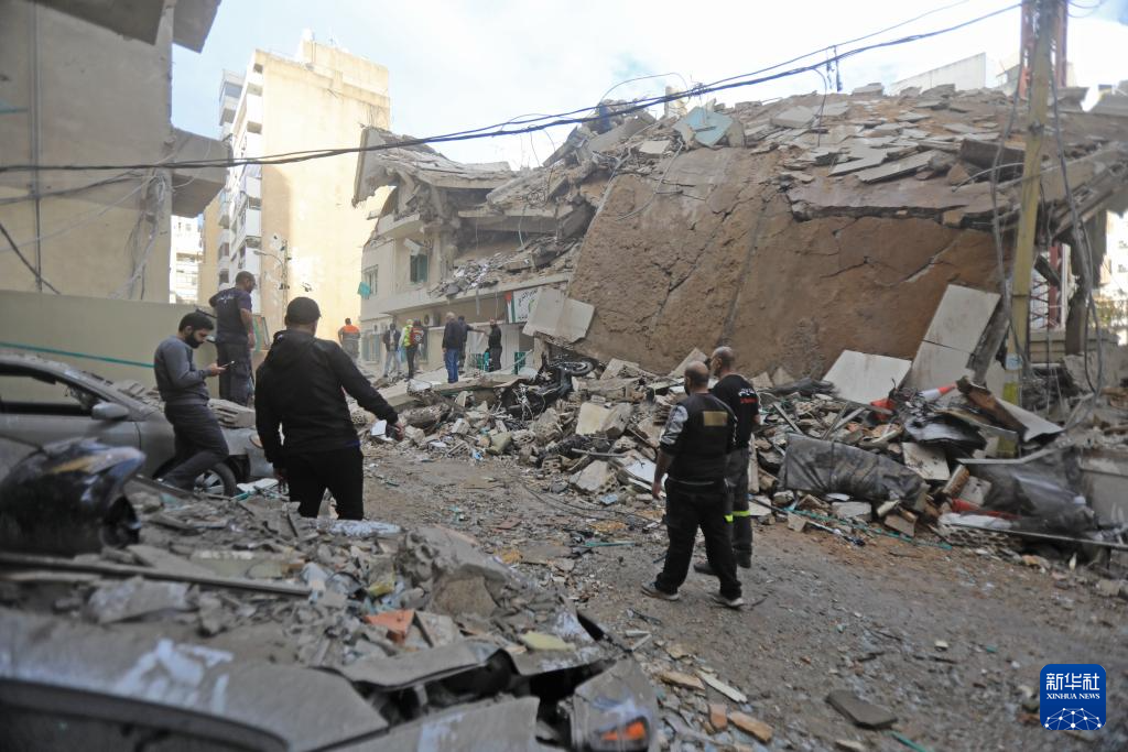 这是11月17日在黎巴嫩贝鲁特市中心拍摄的遭以色列空袭的建筑。