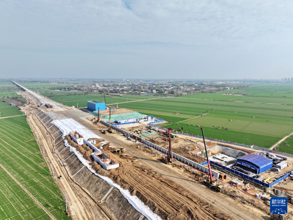 这是11月19日拍摄的位于河北省枣强县的雄商高铁枣强南站建设现场(无人机照片)。