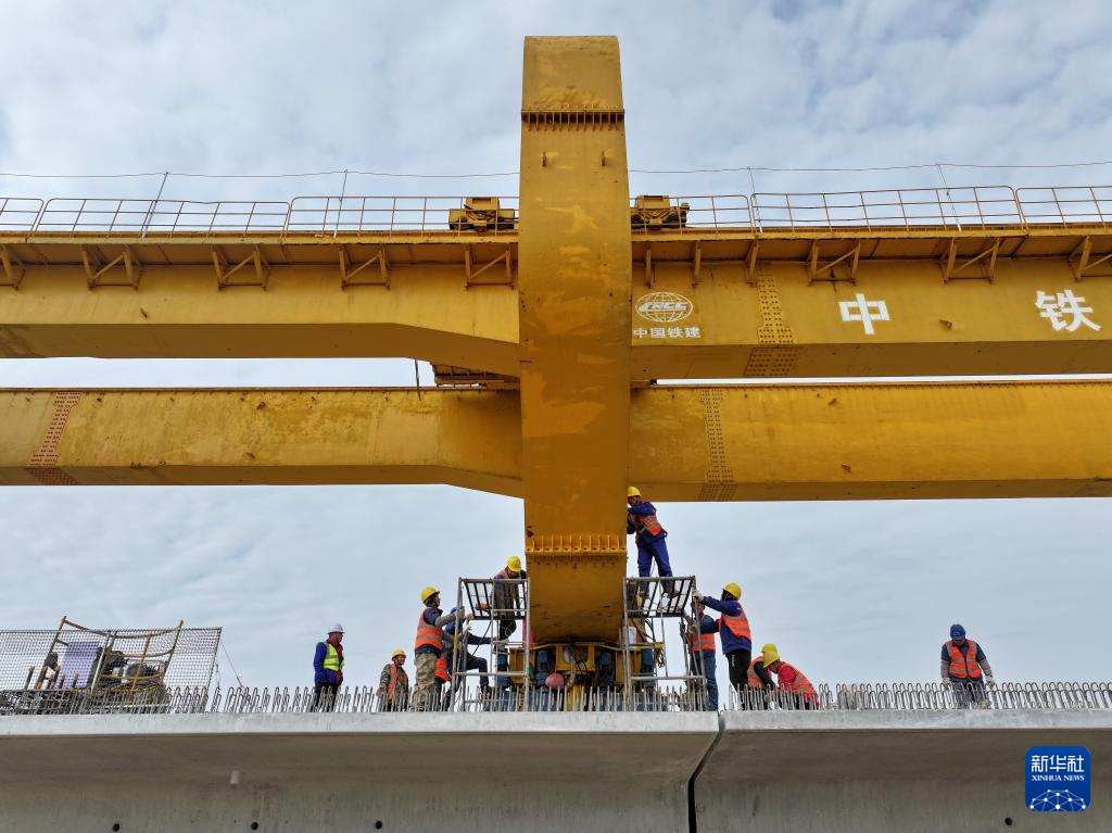 11月19日,中铁十一局集团工人在位于河北省南宫市的雄商高铁站前六标段混凝土构配件智能预制中心内工作。