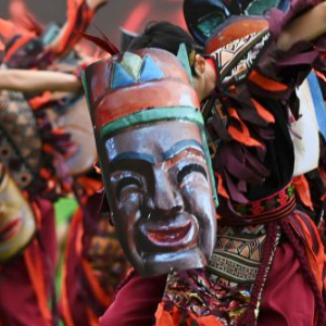 11月20日,在广西罗城仫佬族自治县体育中心,人们在自治县成立40周年群众文艺展演中表演节目。