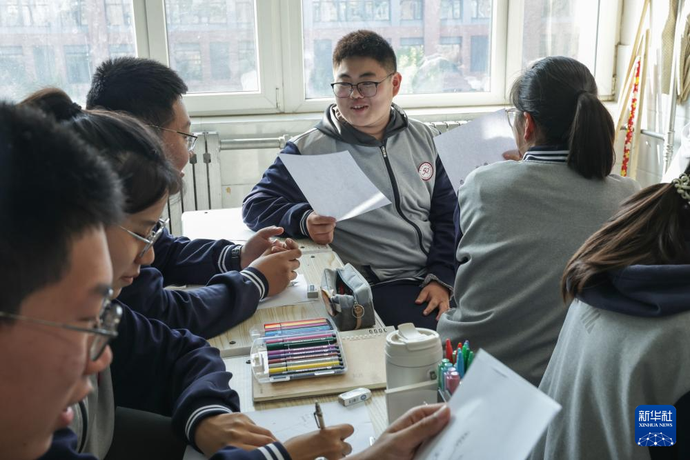 10月24日,山东省章丘四中的学生在心理健康课堂《自我探索之旅》上进行小组讨论。