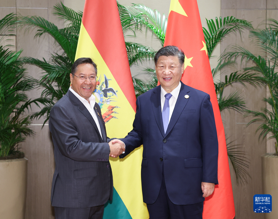 当地时间11月19日上午,国家主席习近平在里约热内卢出席二十国集团领导人峰会期间会见玻利维亚总统阿尔塞。