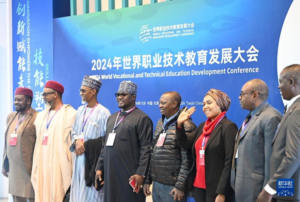 11月21日,参会嘉宾在2024年世界职教大会上合影留念。