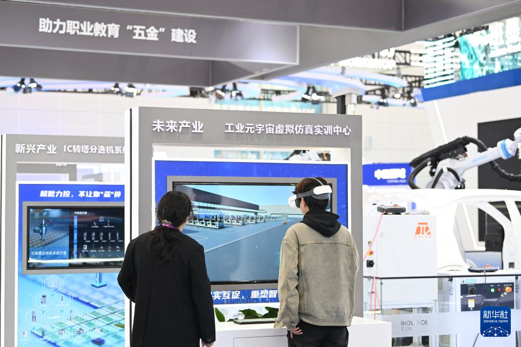 11月21日,参会者在职业教育专题展上体验未来产业仿真实训中心。