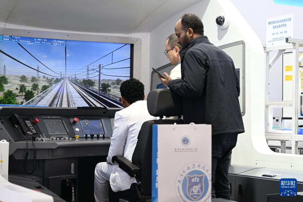 11月21日,参会者在职业教育专题展上体验高铁模拟器。