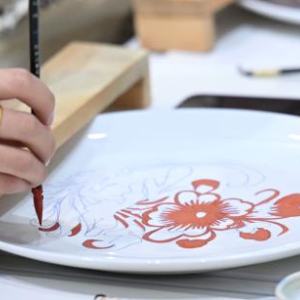 11月21日,参会者在职业教育专题展上展示非遗技艺。