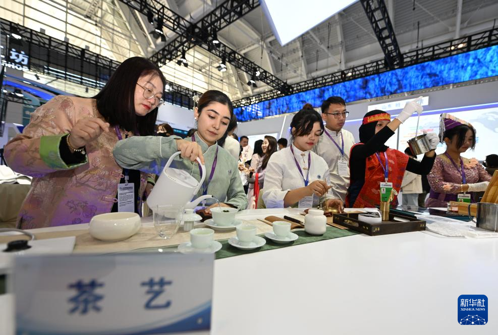 11月21日,参会者在职业教育专题展上展示茶艺。