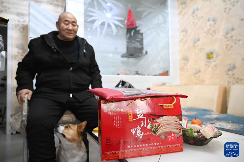 11月20日,扎拉嘎木吉在家中整理他从南京带来的礼物,准备去看望都贵玛老人。新华社记者 连振 摄pagebreak