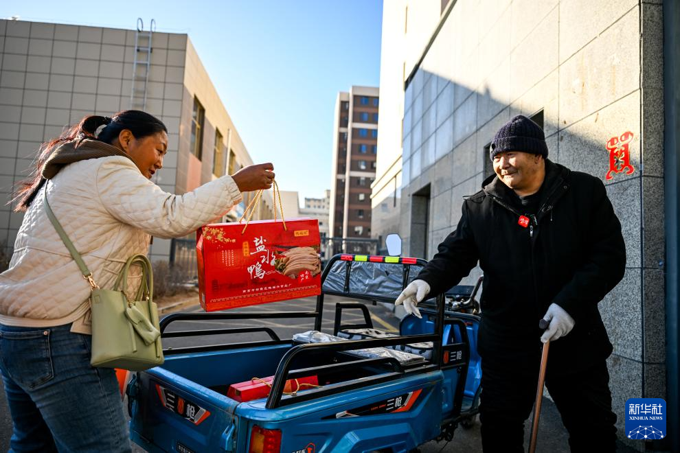 11月20日,扎拉嘎木吉(右)拿上礼物,去看望都贵玛老人。新华社记者 连振 摄pagebreak