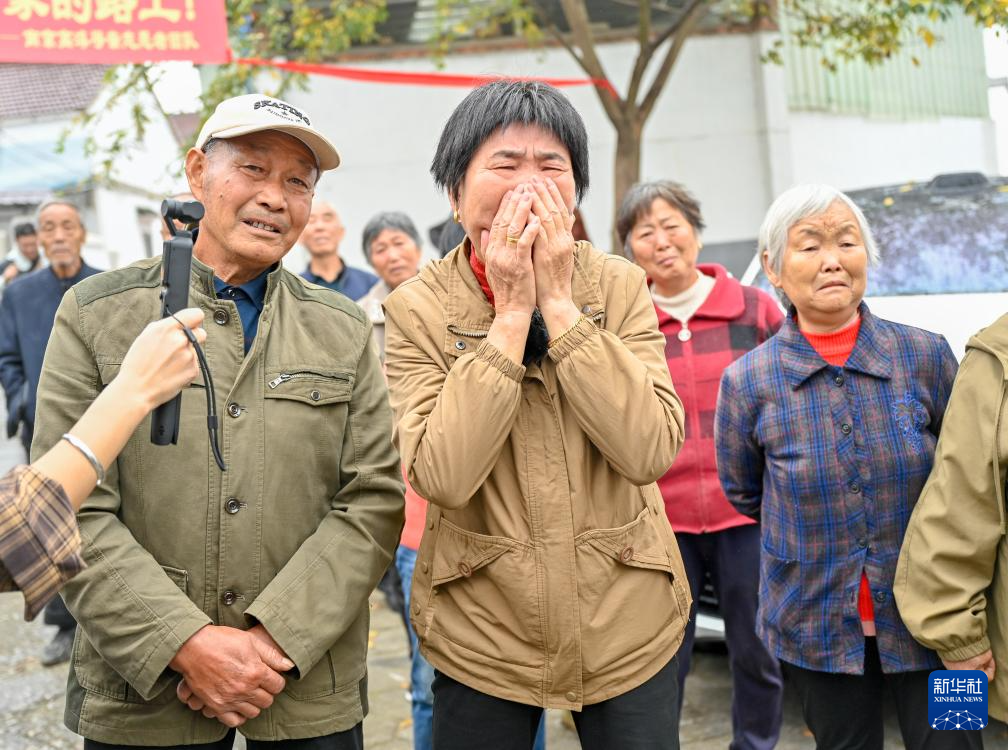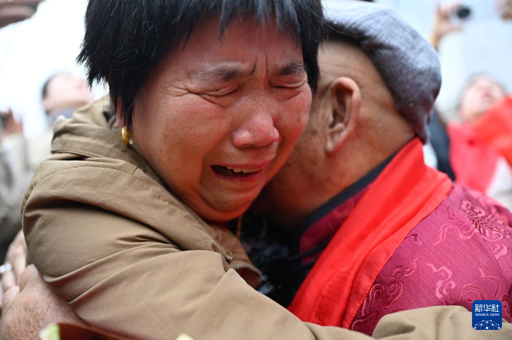 大红横幅下,杭巧云站在人群中,远远地看到远处弟弟的身影,瞬间泪流满面。“我从小是没有妈妈的孩子,爸爸在外面找弟弟一直没有回家,我独自在家哭泣。父亲去世30多年了,他找了一生的儿子回来了。”杭巧云说。