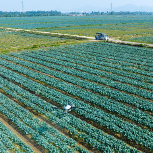 11月22日,在浙江省温岭市东浦农场,农民在进行田间管护工作(无人机照片)。