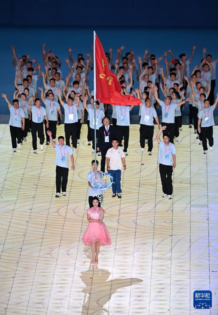 11月22日,黑龙江省代表团在开幕式上入场。