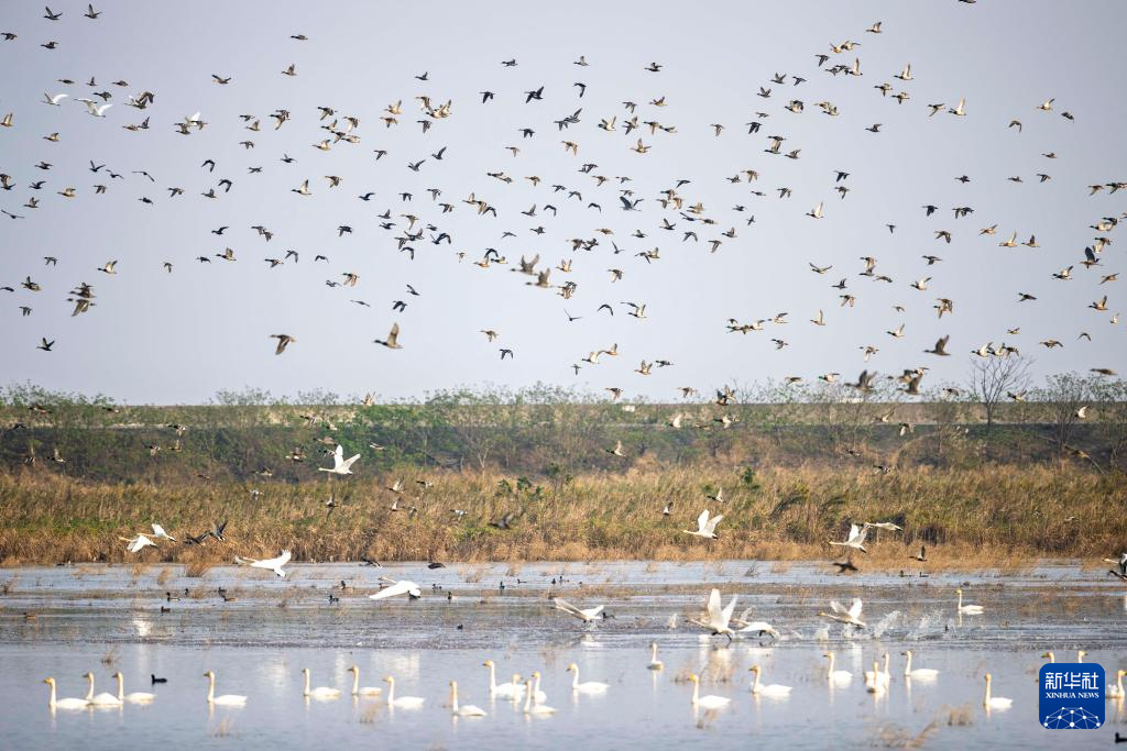 11月12日在上海崇明东滩鸟类国家级自然保护区拍摄的候鸟。时值候鸟迁徙季,大批候鸟飞抵上海崇明东滩鸟类国家级自然保护区的湿地栖息,风景如画。