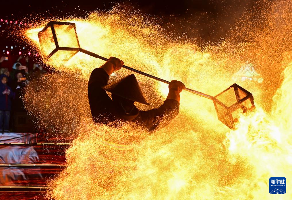 “冰雪之恋”旅游季开幕式上的火壶表演