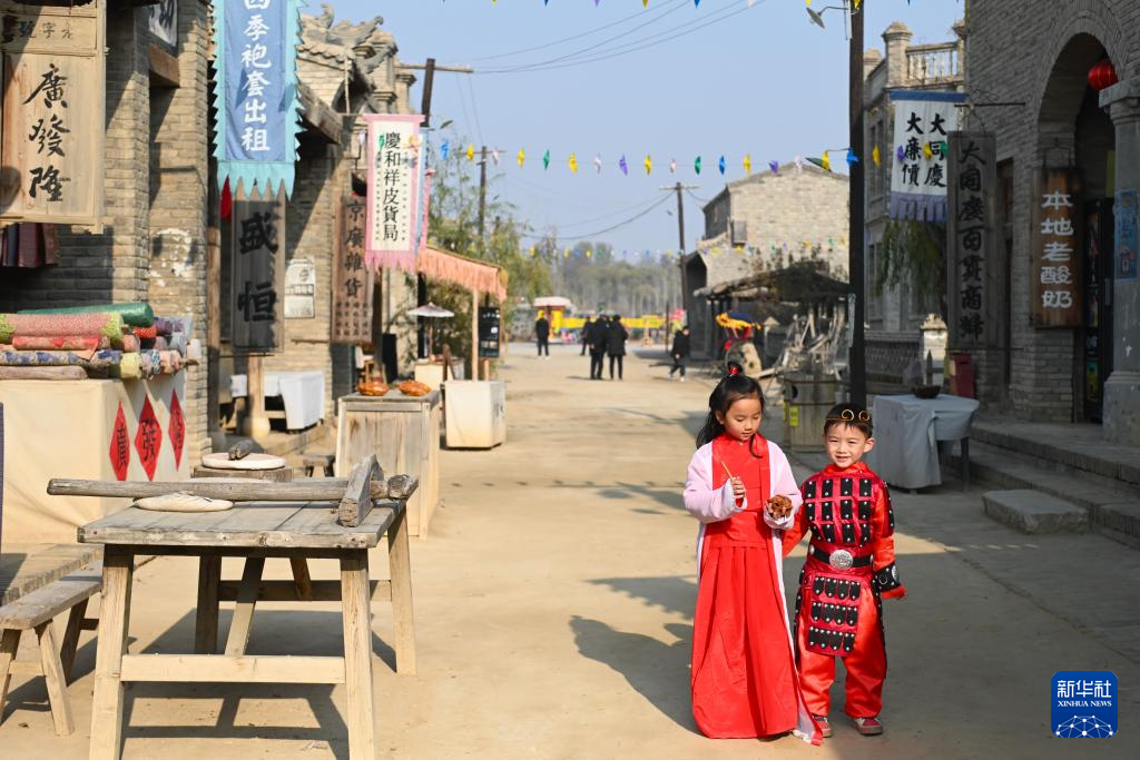 11月23日,游客在镇北堡西部影城的老银川一条街游览。