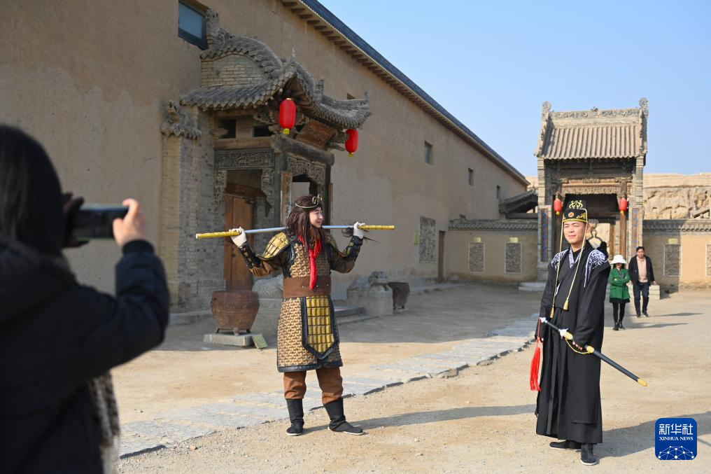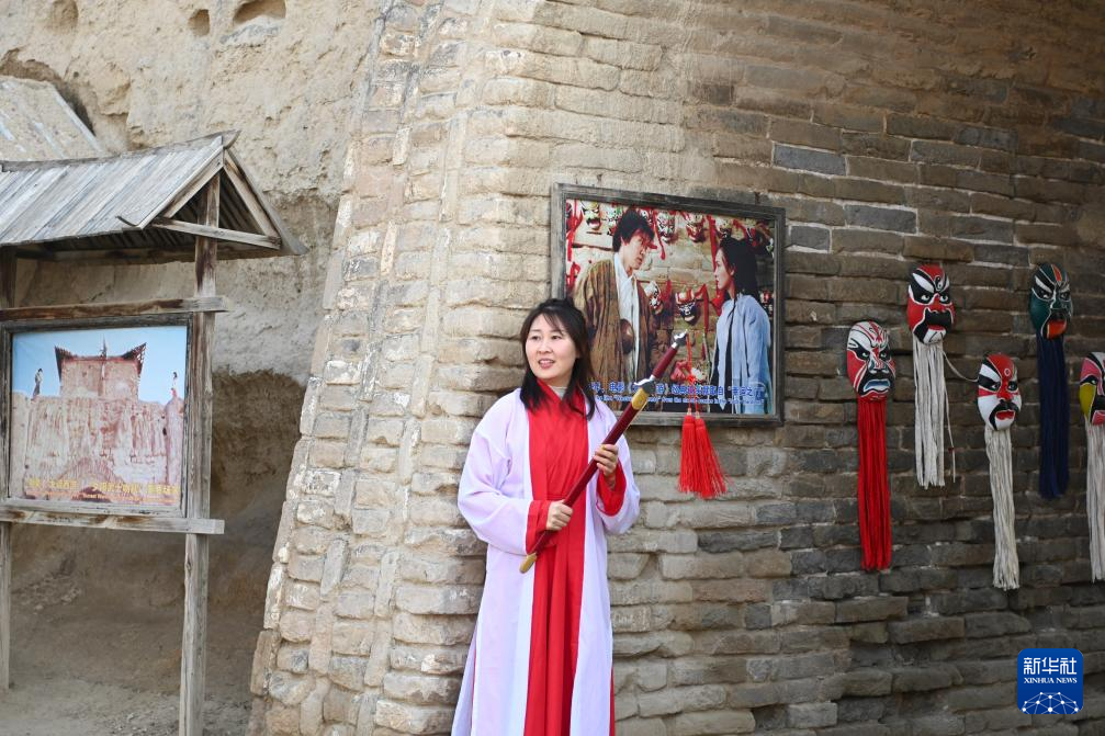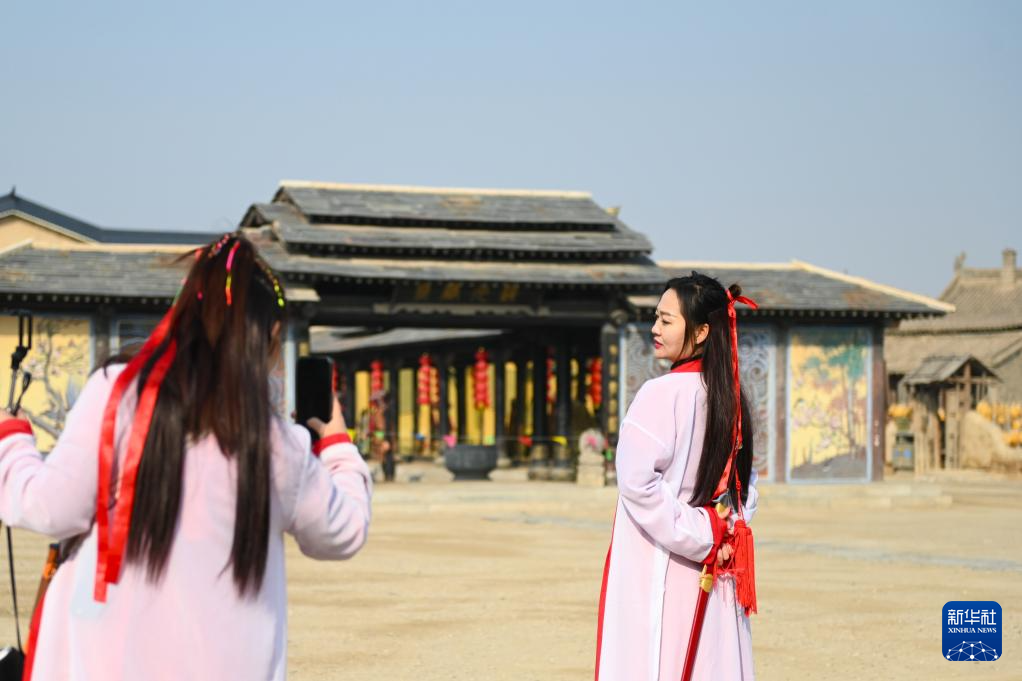 11月23日,游客在镇北堡西部影城打卡拍照。