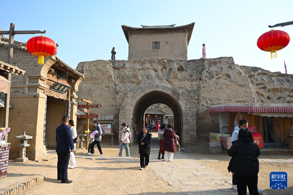 11月23日,游客在镇北堡西部影城游览。
