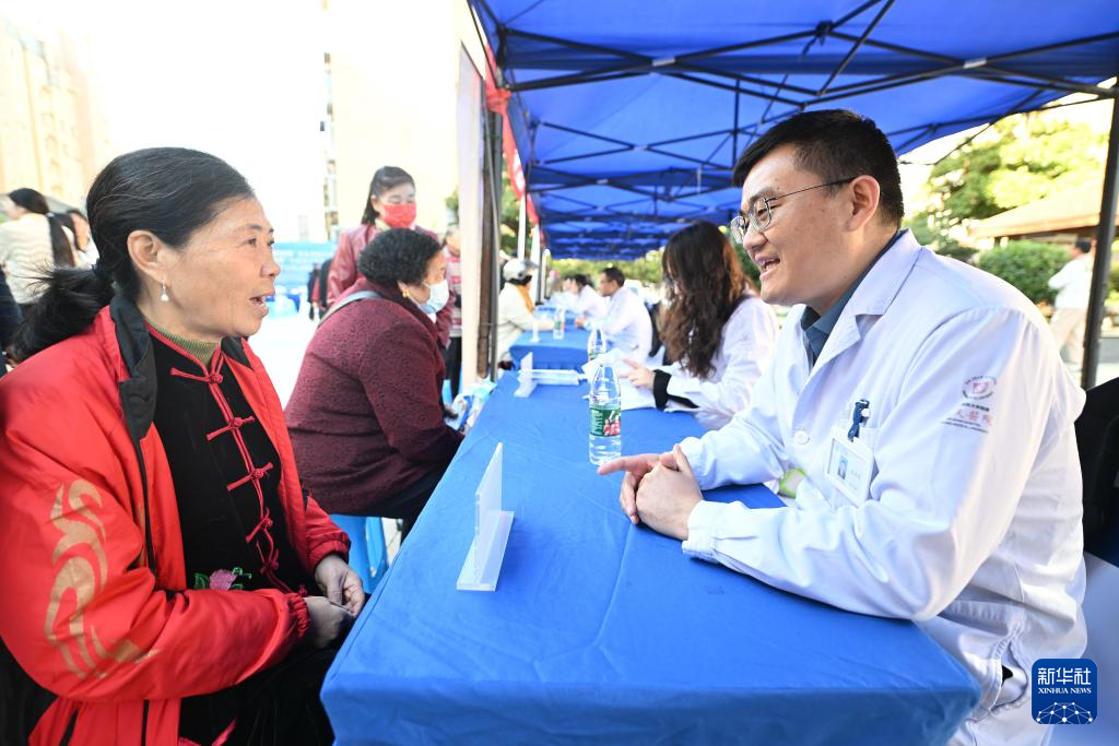 11月23日,在扬州市广陵区汤汪街道九龙村,医生为居民提供健康咨询。