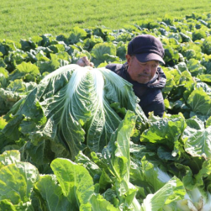 11月23日,在山东省胶州市胶北街道和睦屯村,村民在采收大白菜。