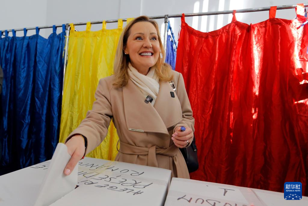 11月24日,拯救罗马尼亚联盟党主席埃列娜·拉斯科尼在罗马尼亚布加勒斯特一处投票站参加总统选举投票。