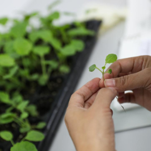 11月23日,湖南省农业科学院的研究人员在岳麓山实验室的分子生物学技术平台里对油菜苗进行性状测试。