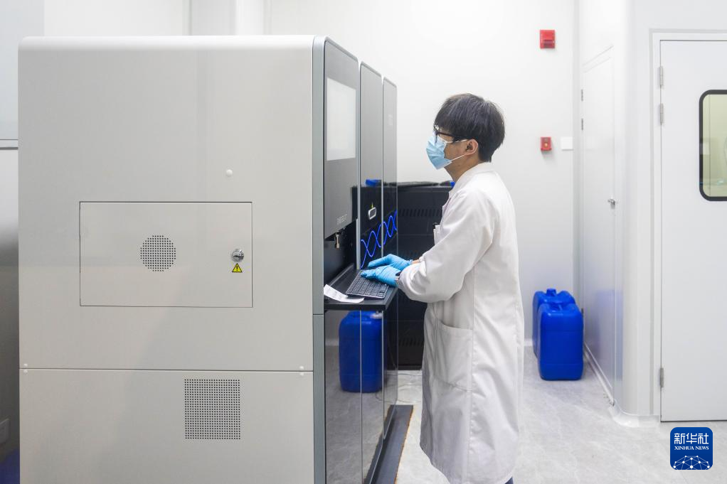 11月23日,在华智生物技术有限公司检测检验实验室,工作人员在进行水稻全基因组测序。