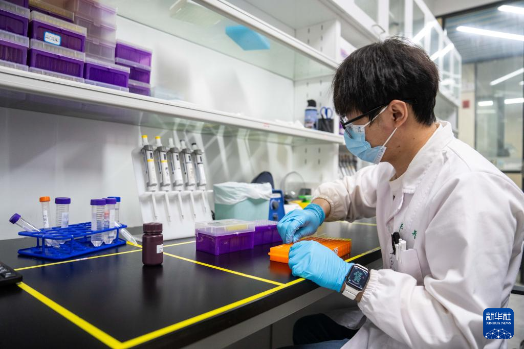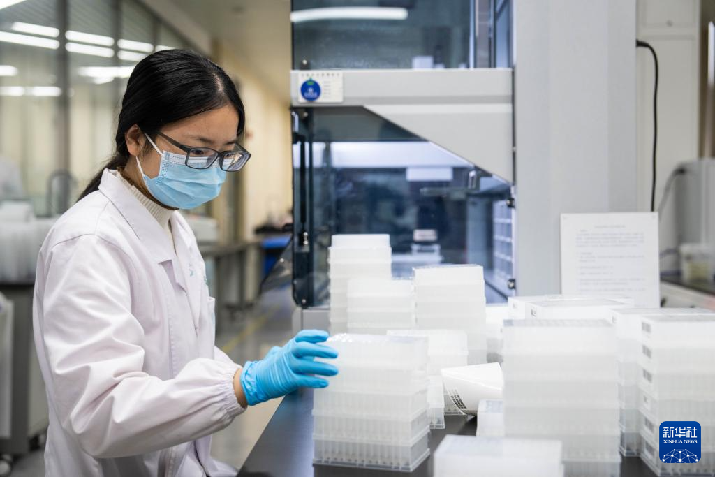 11月23日,在华智生物技术有限公司分子育种实验室,工作人员在整理稻种DNA样本。