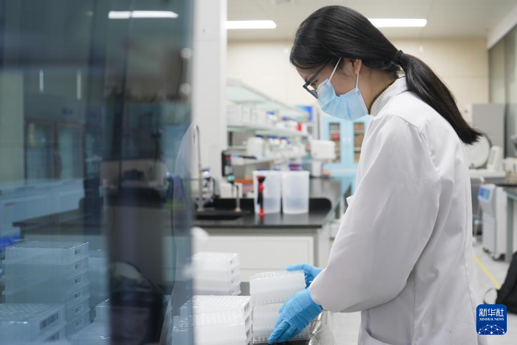 11月23日,在华智生物技术有限公司检测检验实验室,工作人员在进行水稻全基因组建库实验。