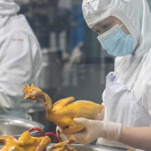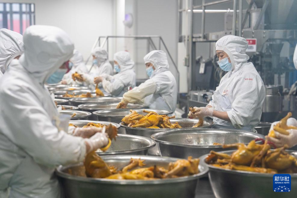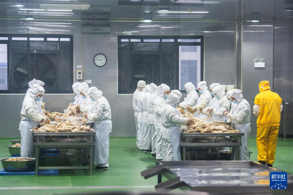 11月24日,在湖南宁乡经开区一家预制菜企业生产车间,工作人员在处理食材。