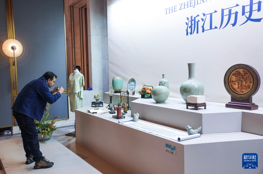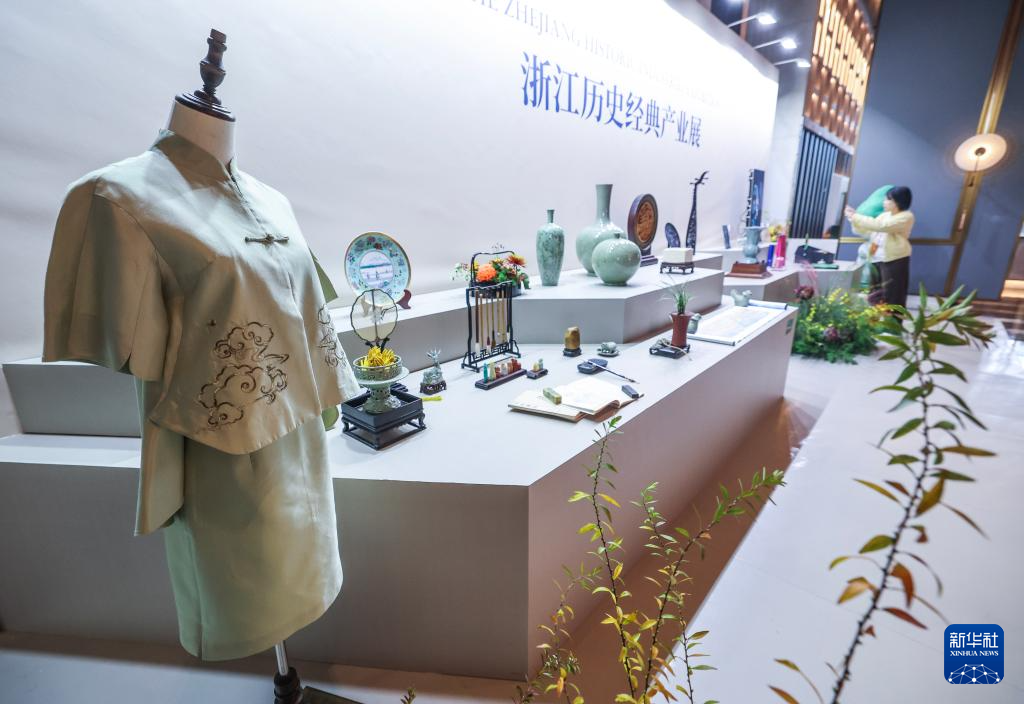 这是11月25日拍摄的浙江历史经典产业展台上展示的浙江特色产业名品和大师作品。