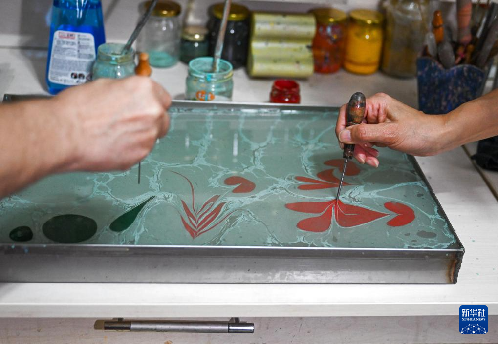土耳其水拓画是一种“水上作花、纸拓成画”的古老绘画技艺,2014年被联合国教科文组织列入世界非物质文化遗产名录。