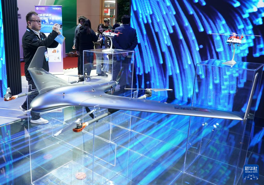 这是11月27日在第二届中国国际供应链促进博览会先进制造链展区中信集团展台拍摄的一款无人机模型。